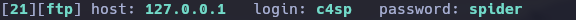 Ya que como nosotros somos lo que creamos el servidor FTP, es a nuestra IP a la que hay que conectarse. Veremos que el servidor FTP nos solicita un usuario y una contraseña. ==(Recordemos que las credenciales son “c4sp” y “spider” pero vamos a suponer que solo sabemos el usuario para utilizar Hydra)==