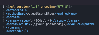 En este caso el comando anterior nos brindó todos los métodos, ahora lo que debemos hacer será buscar el que nos interesa a nosotros wp.getUsersBlogs, en este caso existe. Gracias a esto nos permite elaborar una estructura de ataque de fuerza bruta para enumerar credenciales validas (En la WEB está el código).