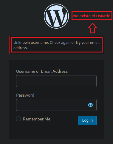 Podemos ver si está activo el panel de administrador colocando http://localhost:31337/wp-admin y de ser así podríamos intentar ingresar con el usuario admin y la clave admin para prestar atención al mensaje de “Error”, ya que Wordpress te indica si el usuario no existe, o si solo te equivocaste en la contraseña. De esta forma también podríamos aplicar fuerza bruta al usuario para identificar si existe o no, ayudándonos de la respuesta que Wordpress nos da.