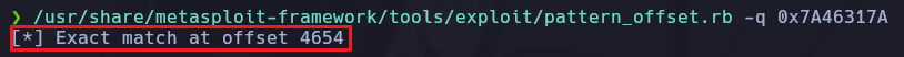 /usr/share/metasploit-framework/tools/exploit/pattern_offset.rb -q 0x7A46317A
