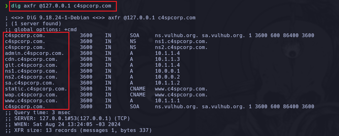 <DNS-server>es la dirección IP del servidor DNS que se desea consultar.<domain-name>es el nombre de dominio del cual se desea obtener la transferencia de zona.AXFRes el tipo de consulta que se desea realizar, que indica al servidor DNS que se desea una transferencia de zona completa.