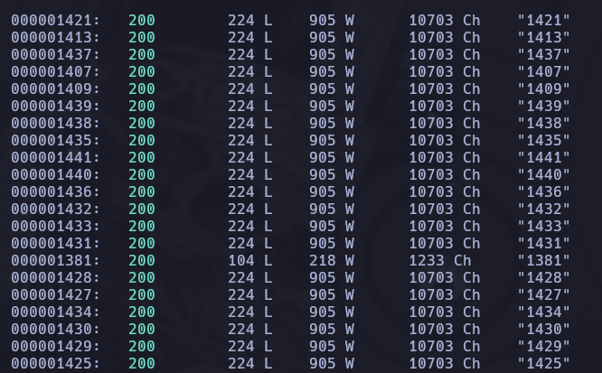 Esto nos dará mucha información, por lo tanto aplicaremos un filtro ya que podemos intuir que las respuestas que poseen 10703 caracteres no son válidas, por lo tanto empleemos el parámetro --hh=10703