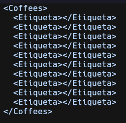 Para tener mayor claridad acerca del contenido que vamos a manipular voy a colocar el código de archivo coffee.xml