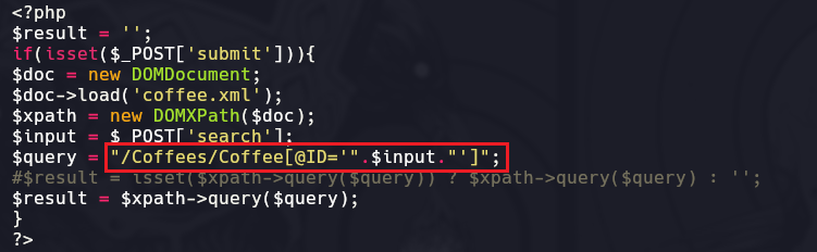 Si nosotros en la máquina víctima estando en el directorio /var/www/html/xvwa/vulnerabilities/xpath hacemos un python3 -m http.server 8084 y luego en nuestra máquina propia hacemos un wget http://192.168.0.139:8084/home.php descargaremos el archivo home.php que se encarga de manipular las peticiónes, esto lo hacemos para ver por dentro como es que se tramita la Query de la búsqueda de Cafés.