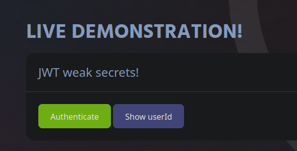 El botón Authenticate sirve para resetear la Cookie, y el de Show userId es para mostrar el usuario actual, nosotros somos el usuario userId:1