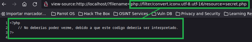 • php://filter/convert.iconv.utf-8.utf-16/resource=(archivo.php) - este Wrapper lo que hace es permitirnos ver el código sin que sea interpretado