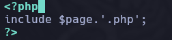 A modo de ejemplo entraremos con un bash al contenedor que está montando el servidor web del laboratorio, lo haremos con docker exec -it college_website_web_1 bash. Luego abriremos con NANO el index.php. Encontraremos una parte del código en donde encontramos este include $page. '.php';, esto es lo que agrega de manera automática un “.php” a nuestra petición web.