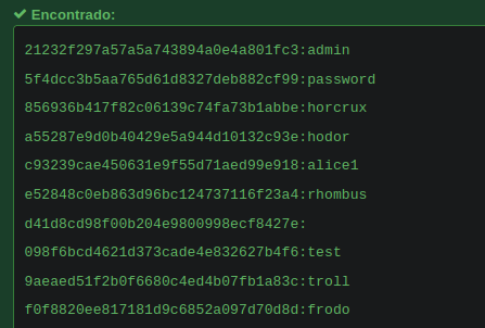 Las contraseñas están hasheadas con md5 por lo que se ve, por lo tanto usaremos un cracker web como lo es https://hashes.com/es/decrypt/hash