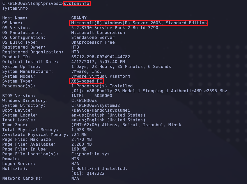 En este caso cuando el privilegio SeImpersonPrivilage está Enabled podríamos utilizar la utilidad llamada Juicy Potatoe de su repositorio pero esta no funcionaría ya que no se encuentra disponible para la versión de Windows que posee la máquina Granny, esto se debe a que es muy antigua como vimos al utilizar systeminfo. (Windows Server 2003)