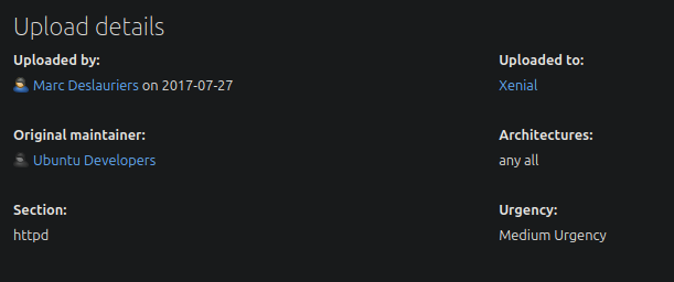 MAC Address: 00:0C:29:7E:63:18 (VMware)Buscando por la web Launchpad la versión de Apache 2.4.18 detectamos que es un Ubuntu Xenial.