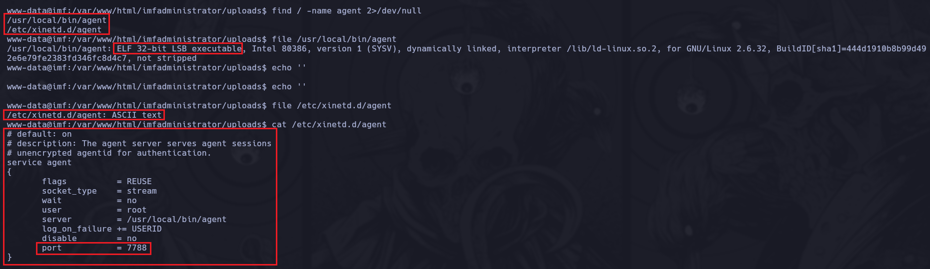 Utilizando el comando find detectamos que hay dos archivos con el nombre “agent”, uno es un binario y el otro un archivo txt que indica las características del binario.