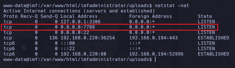 Chequeamos con netstat -nat las conexiones activas para ver si aparece el puerto 7788