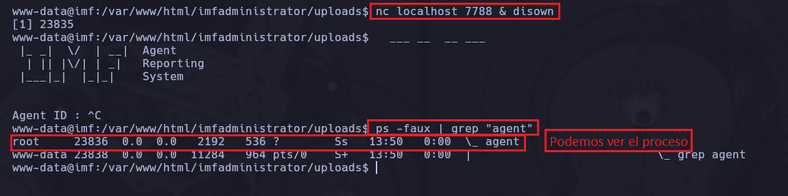 Con esto trataremos de ver que usuario es el que corre el servicio desde otra consola ya que podríamos listarlo porque lo tenemos abierto. Otra alternativa que es más fácil es utilizando nc localhost 7788 & disown para dejar en segundo plano el servicio y poder verlo con el ps -faux