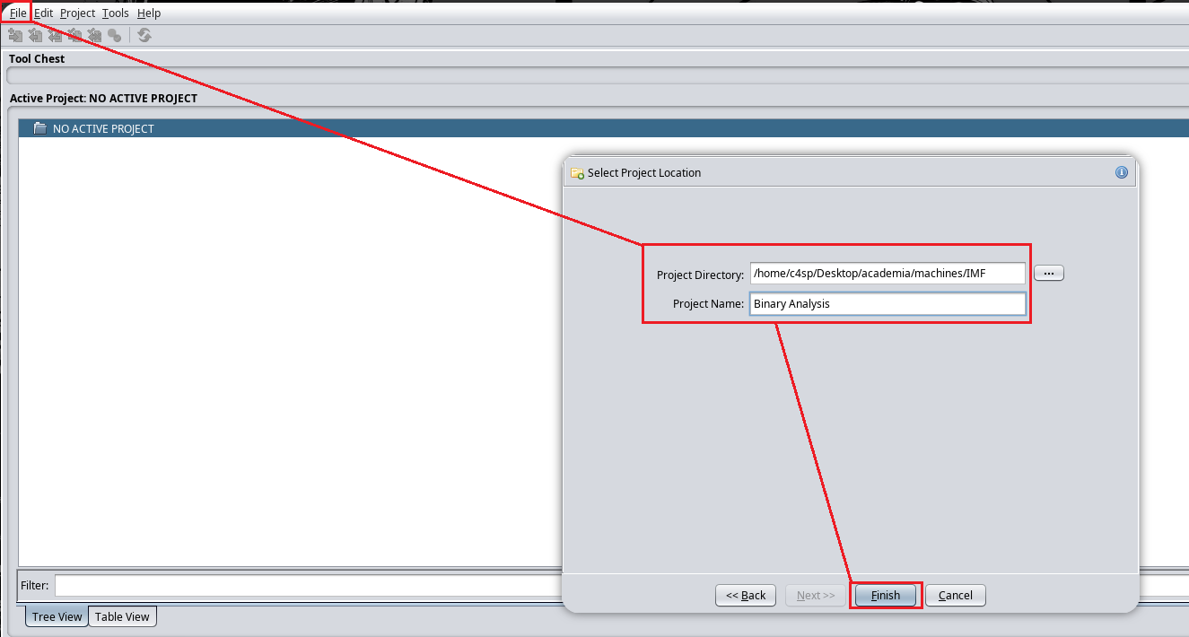 Una vez tengamos el binario agent en nuestra máquina vamos a ir a la herramienta Ghidra y lo subiremos allí, esto se hace clickeando arriba a la izquierda en File/New Project/Non-Shared Project