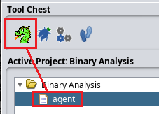 Una vez hecho esto le daremos a File/Import file e importaremos el binario agent, luego arrastraremos este binario al icono del dragón de la parte superior izquierda.