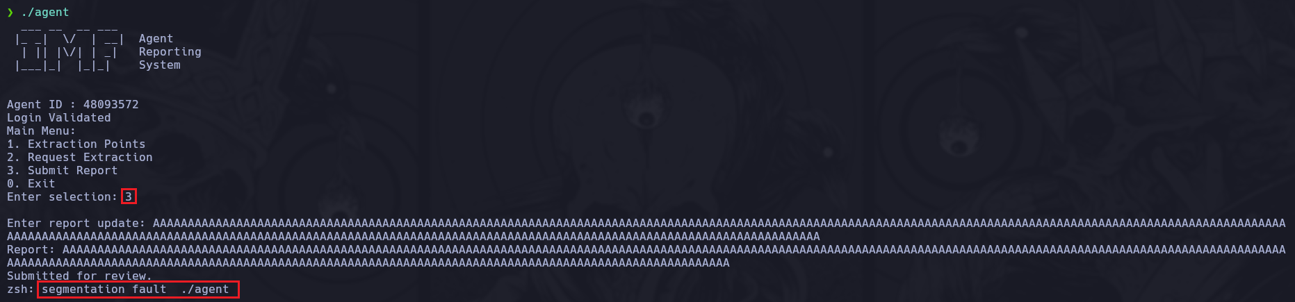 Calcularemos el offset con gdb usando pattern create 200 para crear una cadena de 200 caracteres, luego se la enviaremos al binario en la zona vulnerable y haremos un pattern offset $eip para comprobar que el máximo de caracteres o Bytes que soporta el campo de Submit Report es de 168 Bytes, los próximos 4 Bytes que coloquemos aparecerán en el EIP, por ejemplo “BBBB” aparecerá como “42424242”