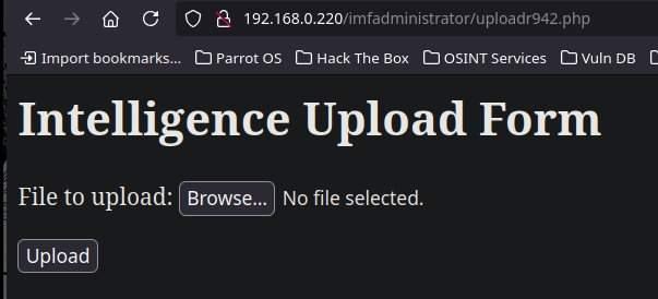 Ruta encontrada por resolver acertijo de código fuente: http://192.168.0.220/imfadministrator/