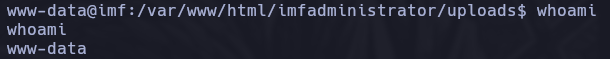 Coloque en la URL el parámetro previamente definido por mi ?cmd=whoami y comprobé que tengo RCE, por lo tanto ahora voy a buscar una Reverse Shell.