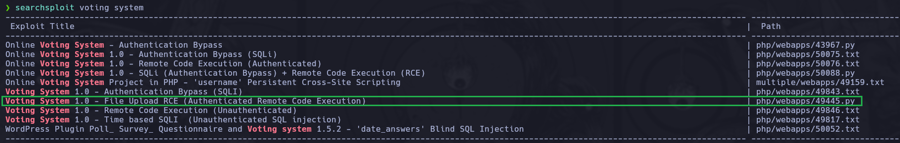 Un método alternativo sería subir de forma manual un archivo con extensión php a través de la sección “Voters”, una vez autenticados como admin. Todo esto es posible gracias a que no se aplica sanitización con respecto a las extensiones de los archivos que suben en el campo de imagen de usuario.